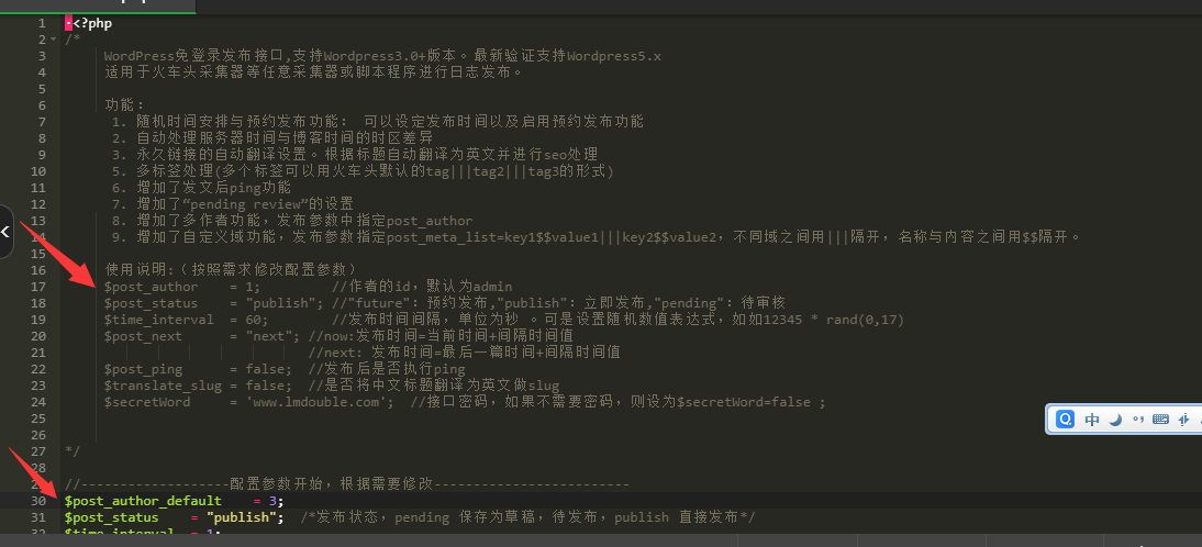 在接口文件的30行左右。里面有个值我们根据自己具体情况填。