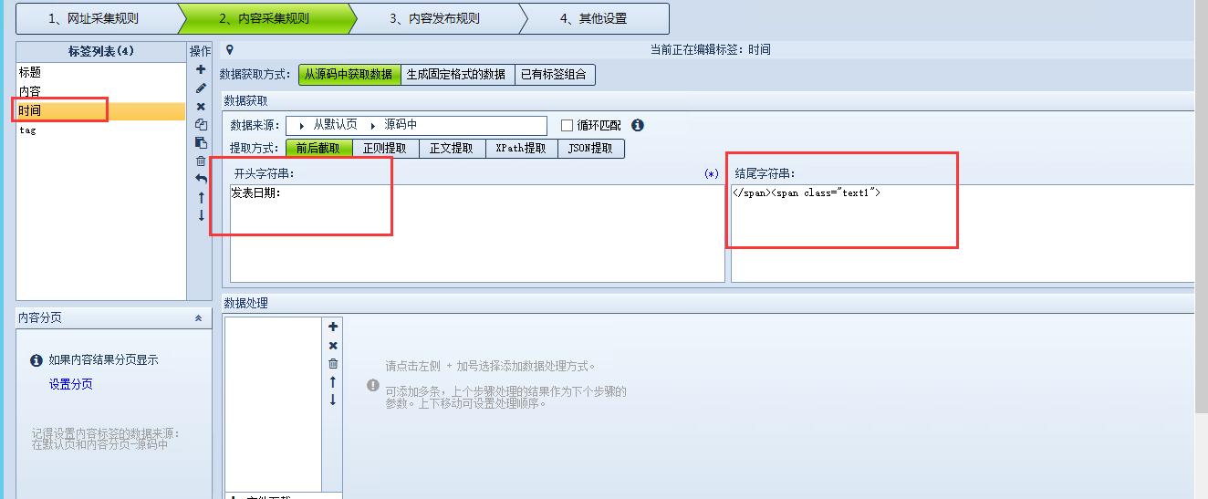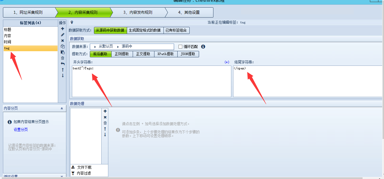 标签跟时间采集思路一样,对比要采集的文章里标签前后的源代码。创建个采集项,然后设置采集规则。就行了